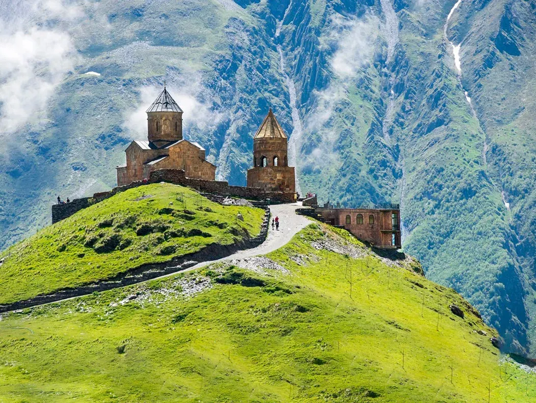 - One of the most photographed spots in Georgia, perched against the mighty Mt. Kazbegi.